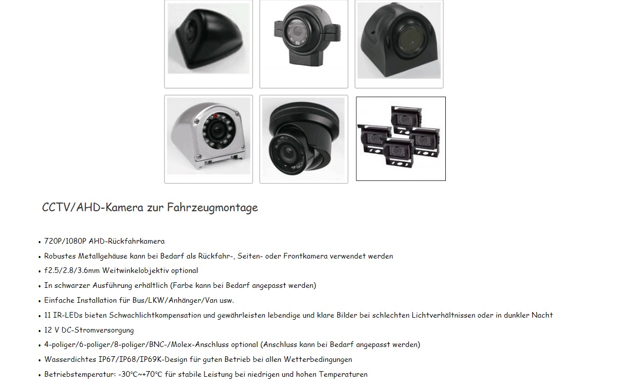 Optionale Kameras/IP Kameras auf Anfrage